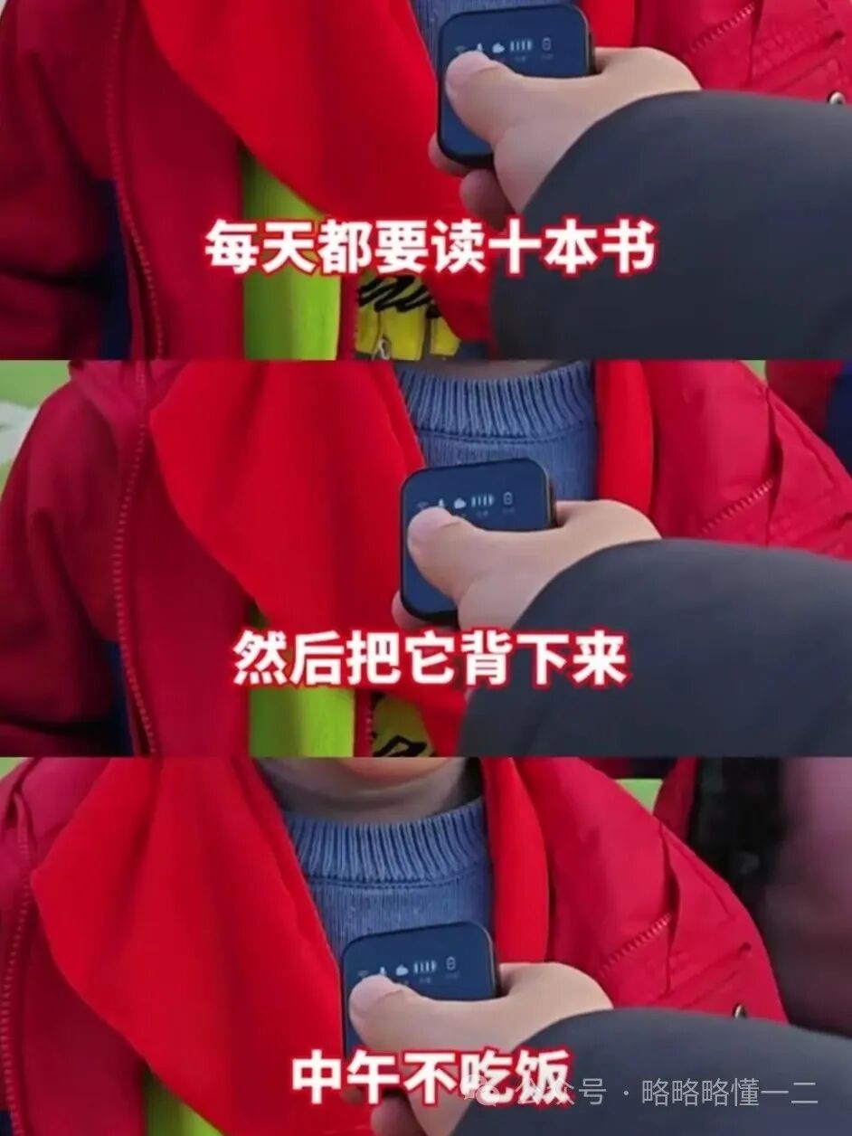 首先小学生说大学生很厉害,每天都要读十本书,然后还能把它们背下来,中午还不吃饭。