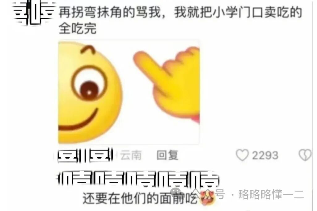 还有大学生一气之下又气了一下,说再拐弯抹角的骂我,我就把小学门口卖吃的都吃完,网友说还要在小学生面前吃。