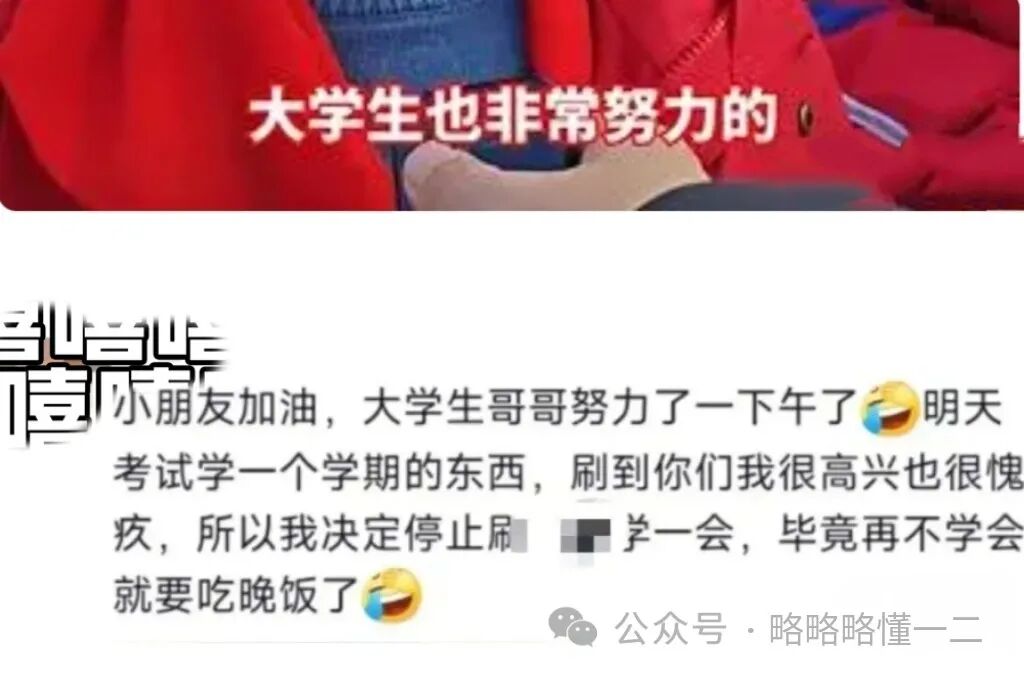 但也有一点好处,有正在复习的大学生刷到小学生评价自己的视频,他觉得内心非常愧,决定停止刷视频去学习。