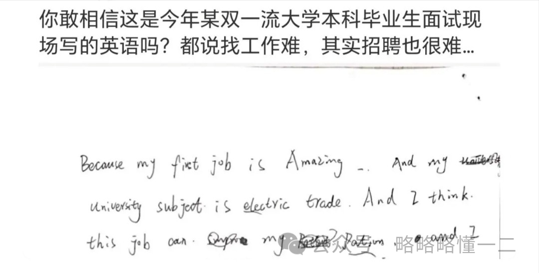 双一流大学的学生写出这种水平的英文,不由得让大家想到现在就业困难的事情。