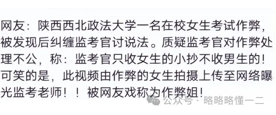 听到这,可能大家就不理解了,一般来说政法类院校的学生将来从事司法相关的工作,是属于正义的一方,维护正义公平的,本身政法院校的学生考试作弊,大家就觉得挺尴尬的了。
