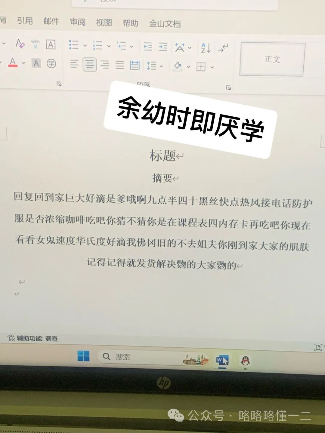 期末了,要写论文了,毕竟大四上半期是我们最后的自由了,于是就有大学生开始“作妖”了,“余幼时即厌学”,把自己的内心活动和对玩耍的渴望表现得淋漓尽致。