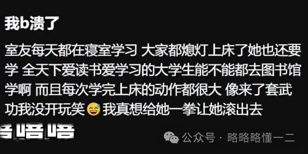 像这样的同学还不止一个,在评论里我们看到了很多大学生的吐槽,室友每天都在寝室里学习,已经熄灯了还在学习,最后上床睡觉的时候动作还很大,这属实是有一些过分了。