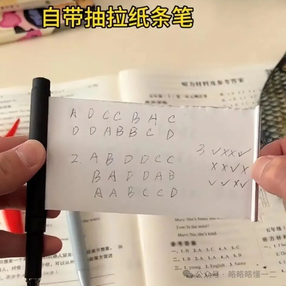 还有对于学生党来说“很实用”的笔,因为这支笔自带抽拉纸条,要是给同学传递个答案,都有可能骗过老师,老师以为是简单的同学之间的借笔,谁能想到已经把答案传递过去了?