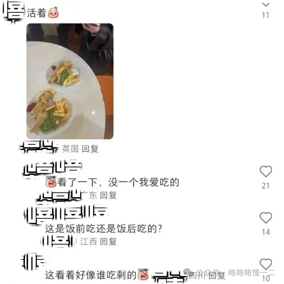 还有人问是饭前吃的还是饭后吃的,这位网友更过分,说好像是吃剩下的,你这话让留学生听了多伤心啊?更想回国吃中餐了。