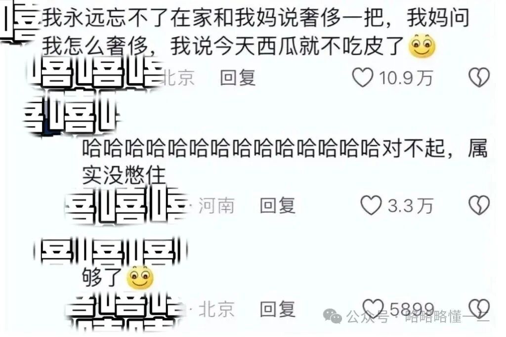 这名同学也很有意思,在家和妈妈说奢侈一把,怎么个奢侈法呢?就是西瓜不吃皮了。嗯?难道在国外吃西瓜还得吃皮啊?听着都感觉可怜到眼泪快流出来了!