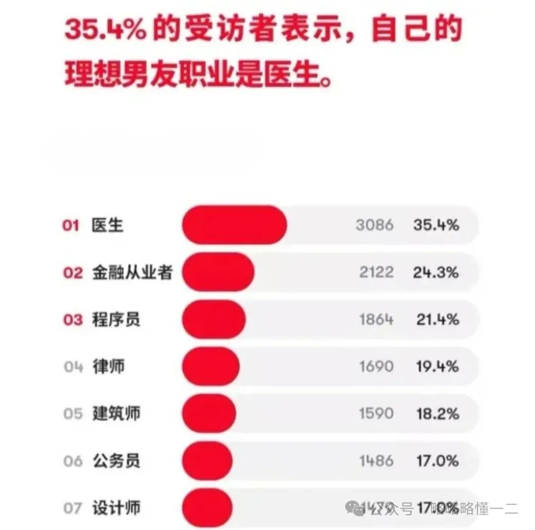 调查结果显示,排名第一的职业是医生,35.4%的投票者都选择了医生这个职业。
