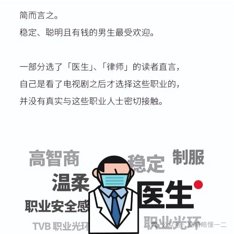 可能是大家觉得医生这个职业会给大家带来安全感,家里有个头疼脑热的时候,也能及时救治,这种安全感会让人觉得很踏实。