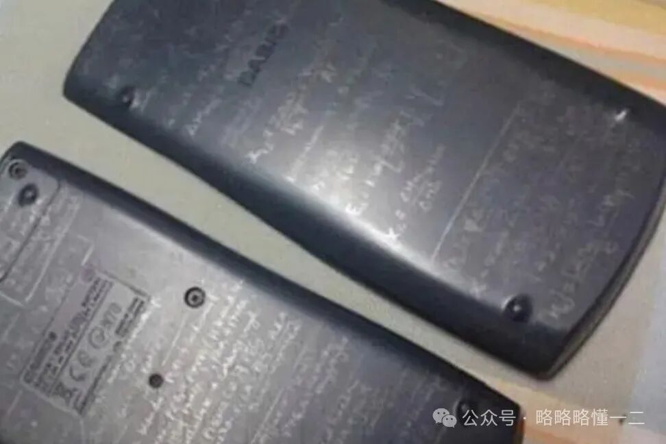 而有的同学连计算器的后壳都利用上了,在上面贴满了数学考试需要的公式,如果不注意的话,还以为是计算器上面的花纹呢?为了考试作弊真是无所不用其极。