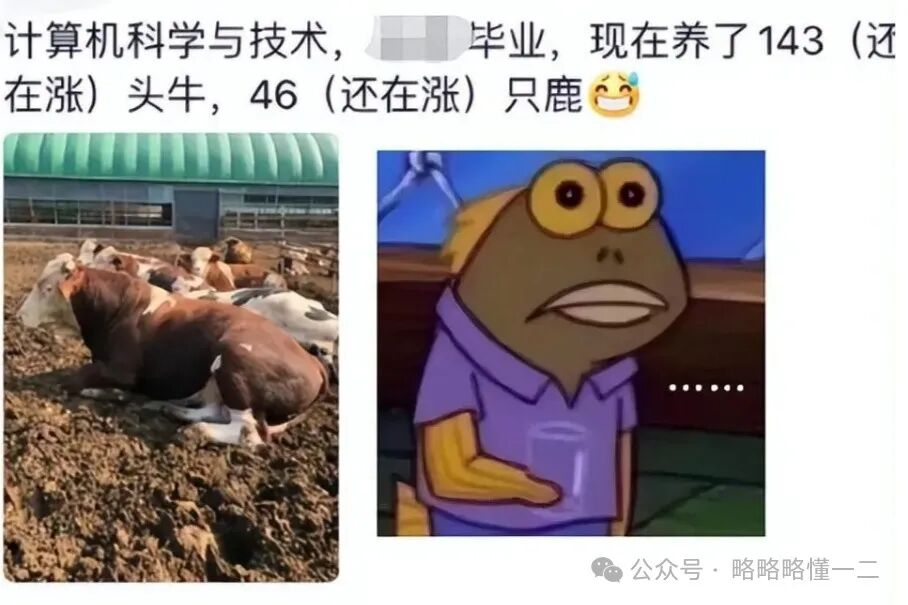 这名同学说自己计算机科学与技术专业的学生,毕业后养了143头牛和46只鹿,而且还在规模扩大中,这岂不是要成为养殖场老板了?