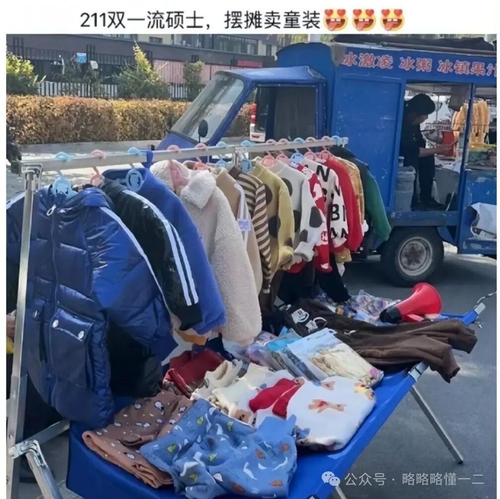 还有211双一流硕士摆摊卖童装的,说出来大家可能都会震惊,为啥名校毕业的硕士要去卖童装呢?