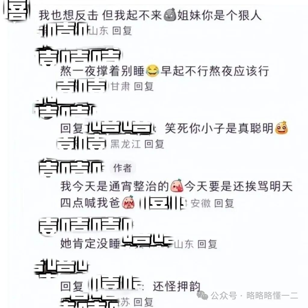 这得到了作者本人的回复,她说自己就是通宵整治的,如果今天还被挨骂的话,明天四点喊她爸,这名大学生真的是狠人一个。
