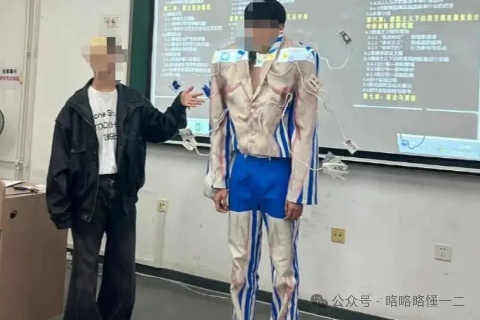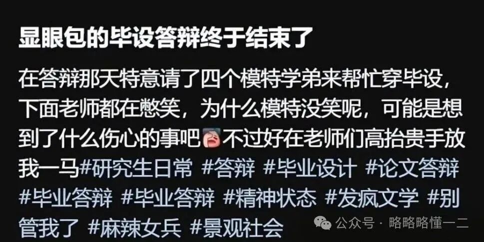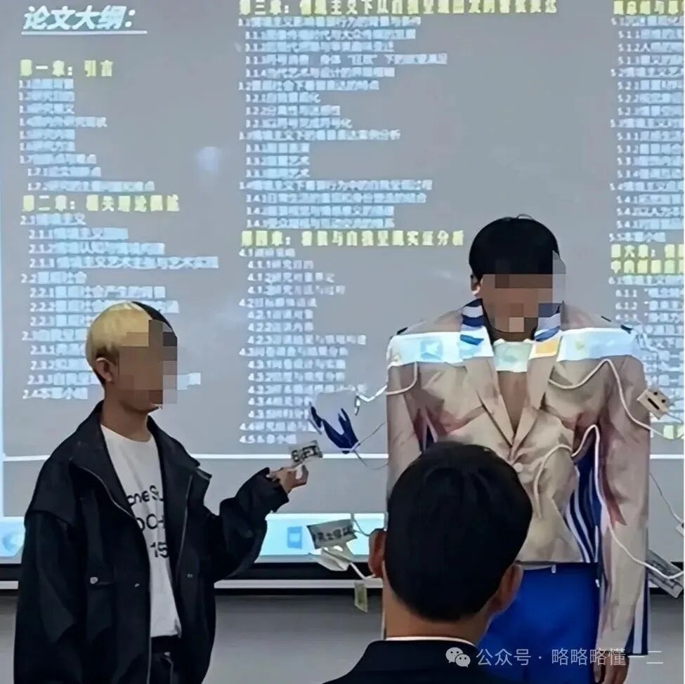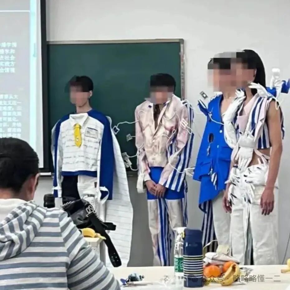 这名女大学生自己说答辩那天请来了模特学弟特意帮忙穿毕设作品,底下的老师看到后都在憋笑,老师们也被这四套衣服给时尚到了吗?