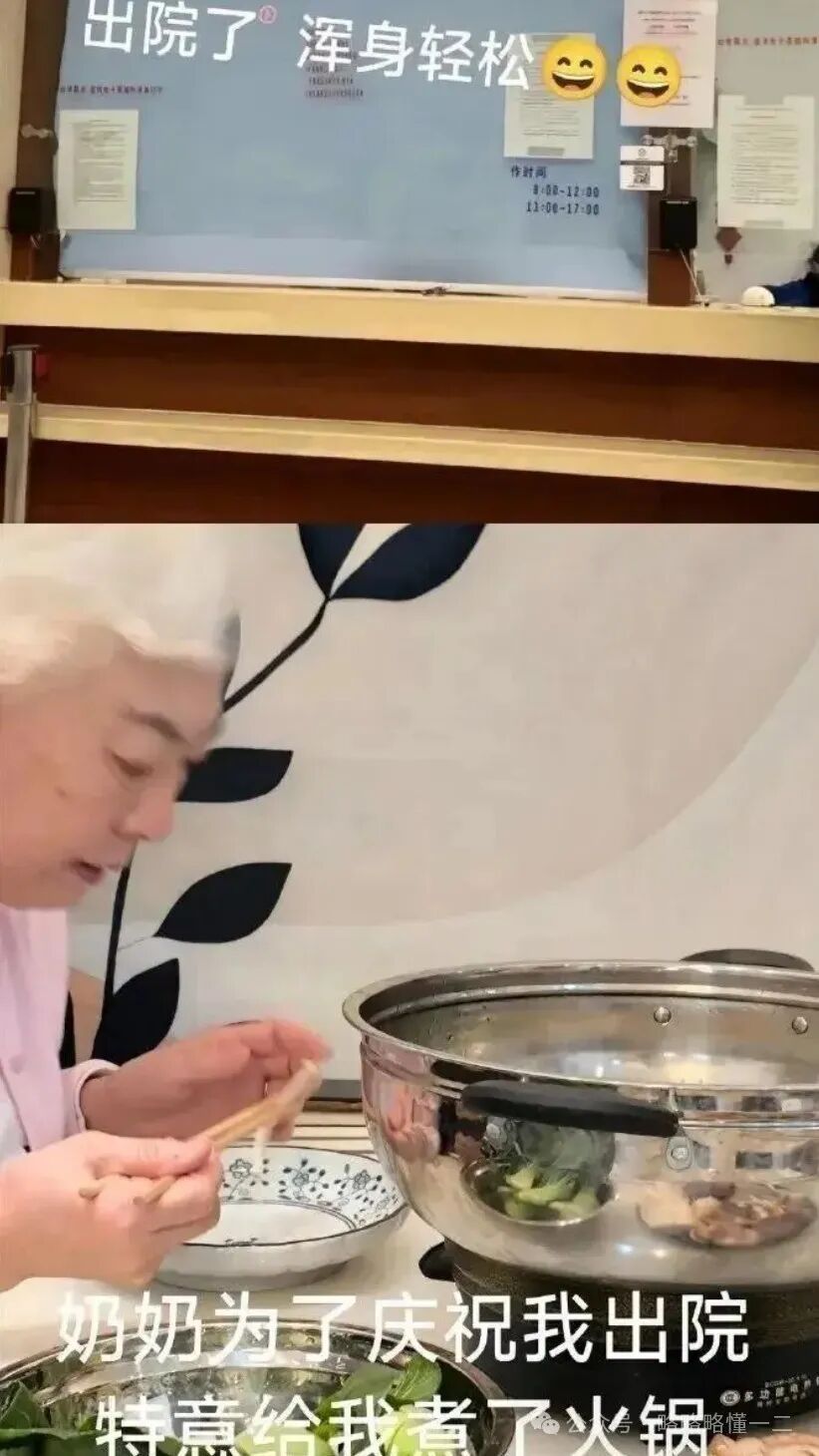 奶奶为了庆祝他出院,给他煮了一锅火锅,这回一家人整整齐齐都来到了医院,谁也不用数落谁了,简直太离谱,这一家人是懂“做饭”的。