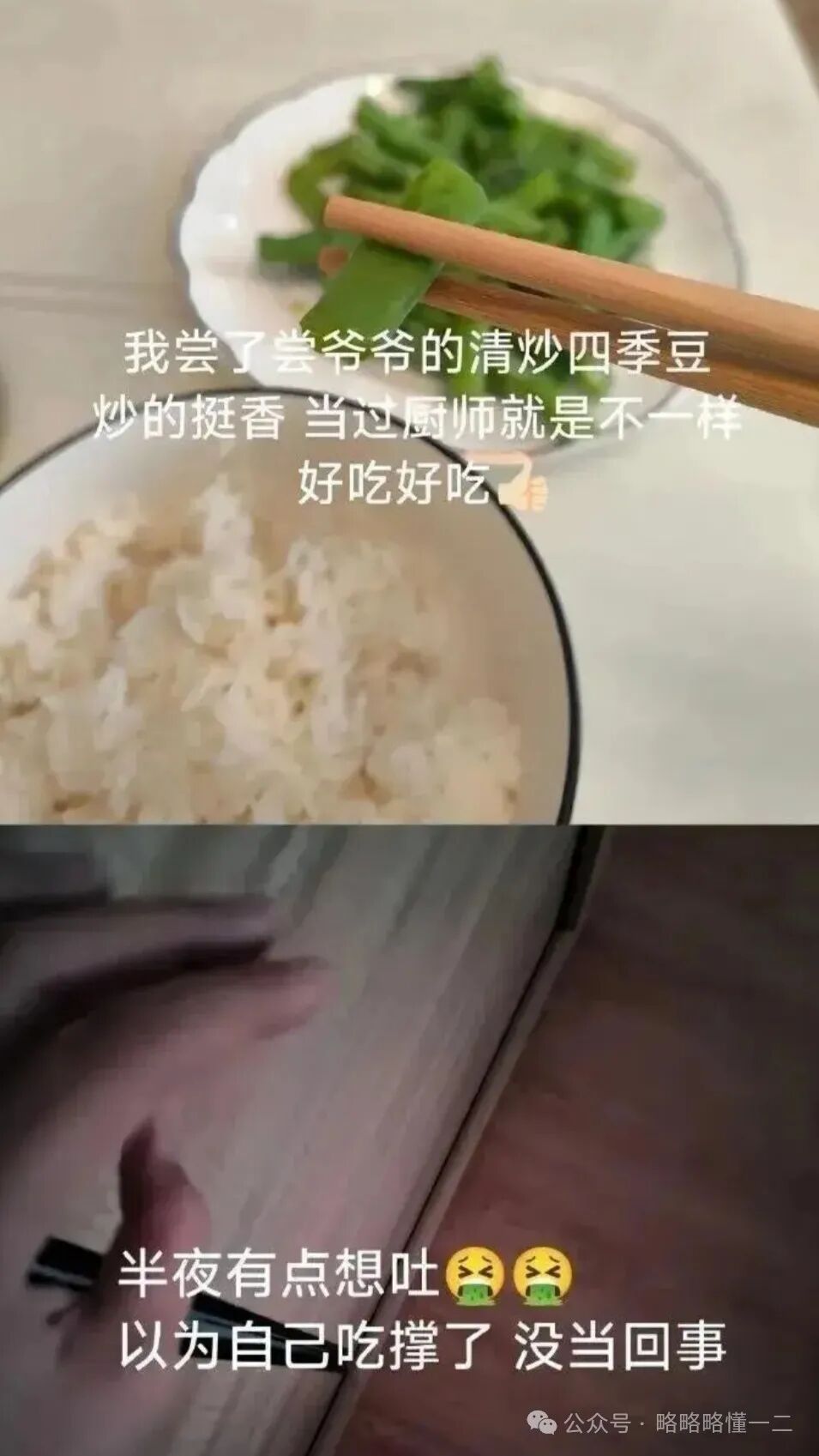 这名大学生也很有意思,清炒四季豆没熟居然没吃出来。