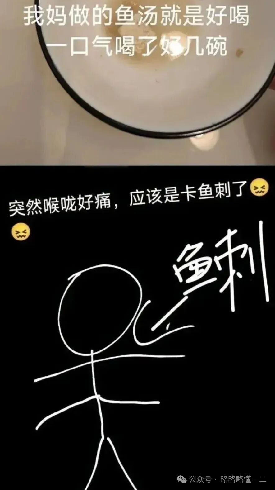 大学生非常满意地说妈妈做的鱼汤就是好喝,一口气喝下好几碗,但喉咙突然觉得好痛,不用说大家也猜到了,被鱼刺卡住了。