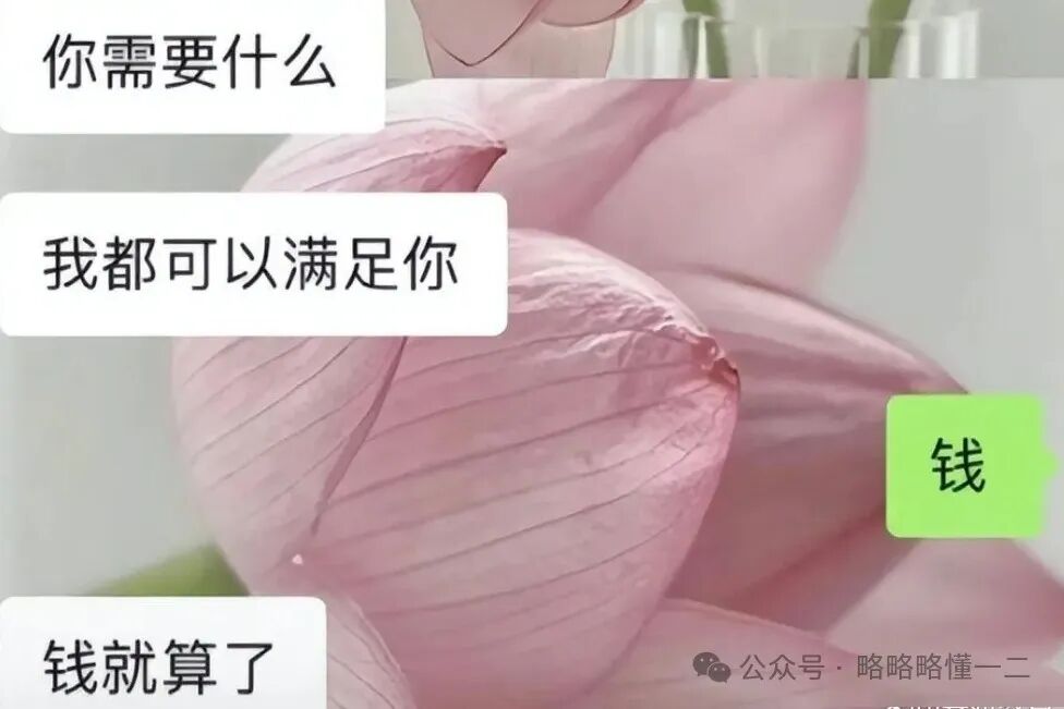 还有主打一个真实的聊天记录,男生“放狠话”,说女生需要什么,自己都可以满足,结果女生说需要钱。