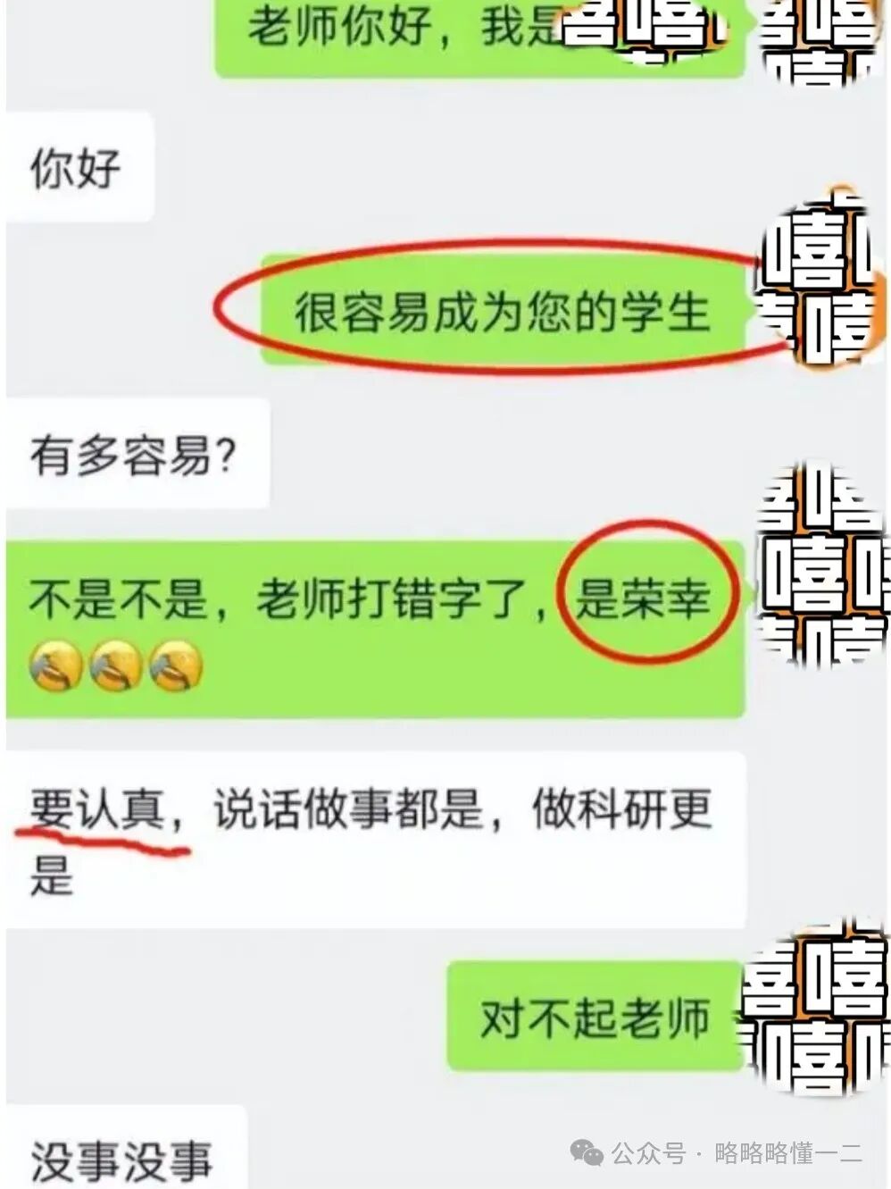 这名同学想说“很荣幸成为你的学生”,把“荣幸”写成了“容易”,导师也忍不住好奇想问,有多容易呢?
