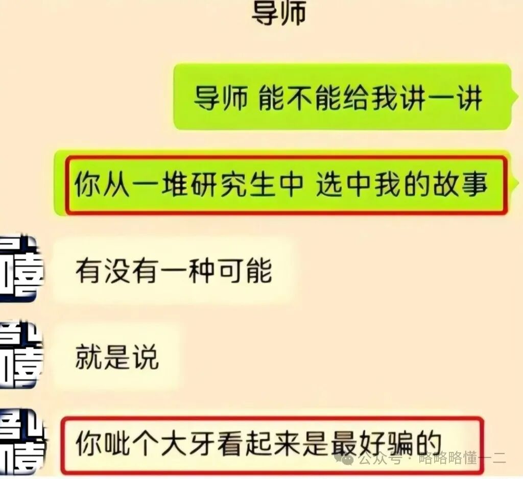 本来想让导师的话温暖温暖自己,没想到导师直接说出实话,导师说有没有一种可能就是说你呲个大牙看起来是最好骗的。