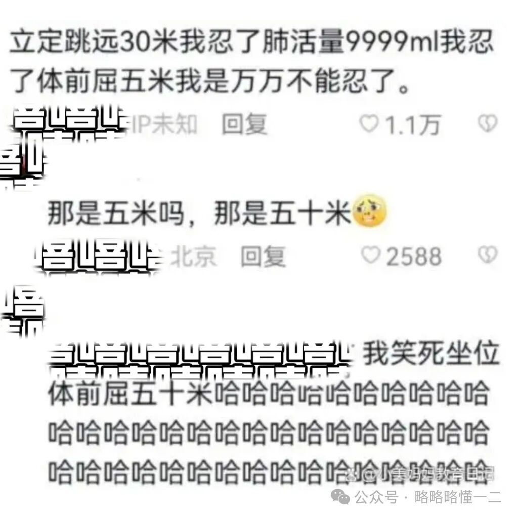 还有立定跳远3米的,努努力倒是可以相信,30多米的同学成为了“显眼包”,如果笑笑是老师的话,都想让他给我表演一下怎么跳的?