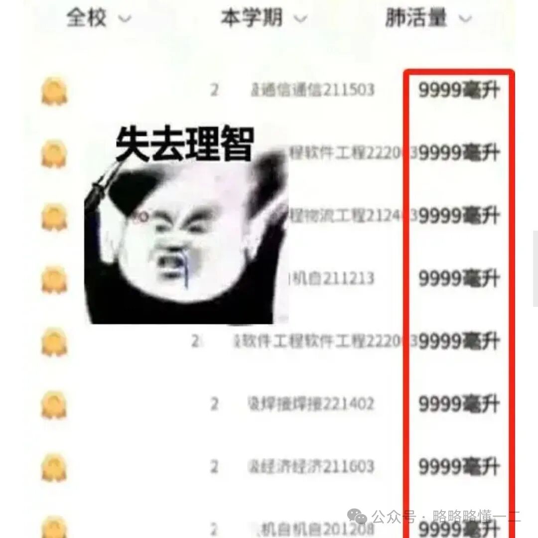 肺活量很多同学的数据是9999毫升,数字倒是很好,但是不是9999毫升是系统的上限,而不是同学们“作弊”的上限呢?