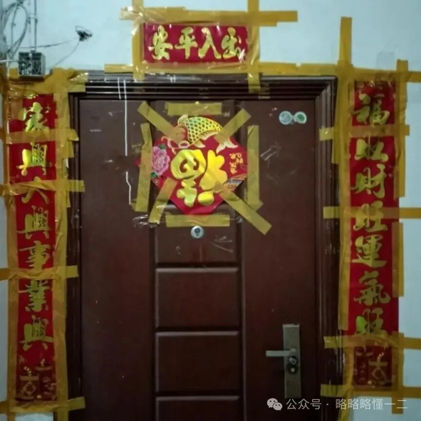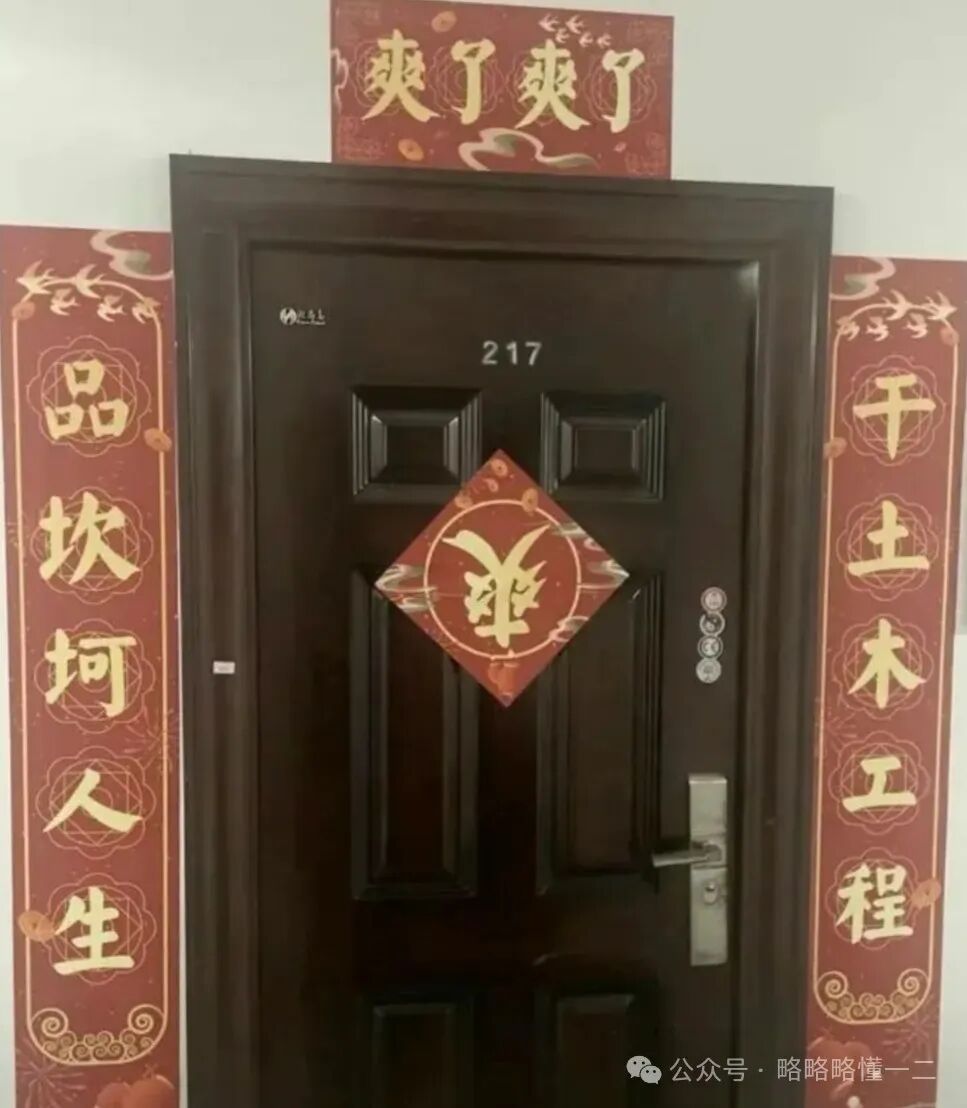 估计都能把邻居惊吓到,为什么要这么贴对联呢?主打的就是一个不理解,是不是家里三个位置的春联都被大学生在门上一个位置给贴了。