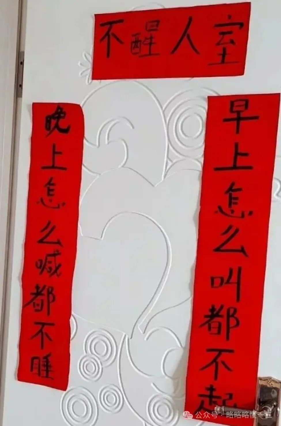 在春联当中吐槽真是头一次见!好像还把这副对联贴在了寝室门上,你们难道就不怕辅导员来约谈吗?