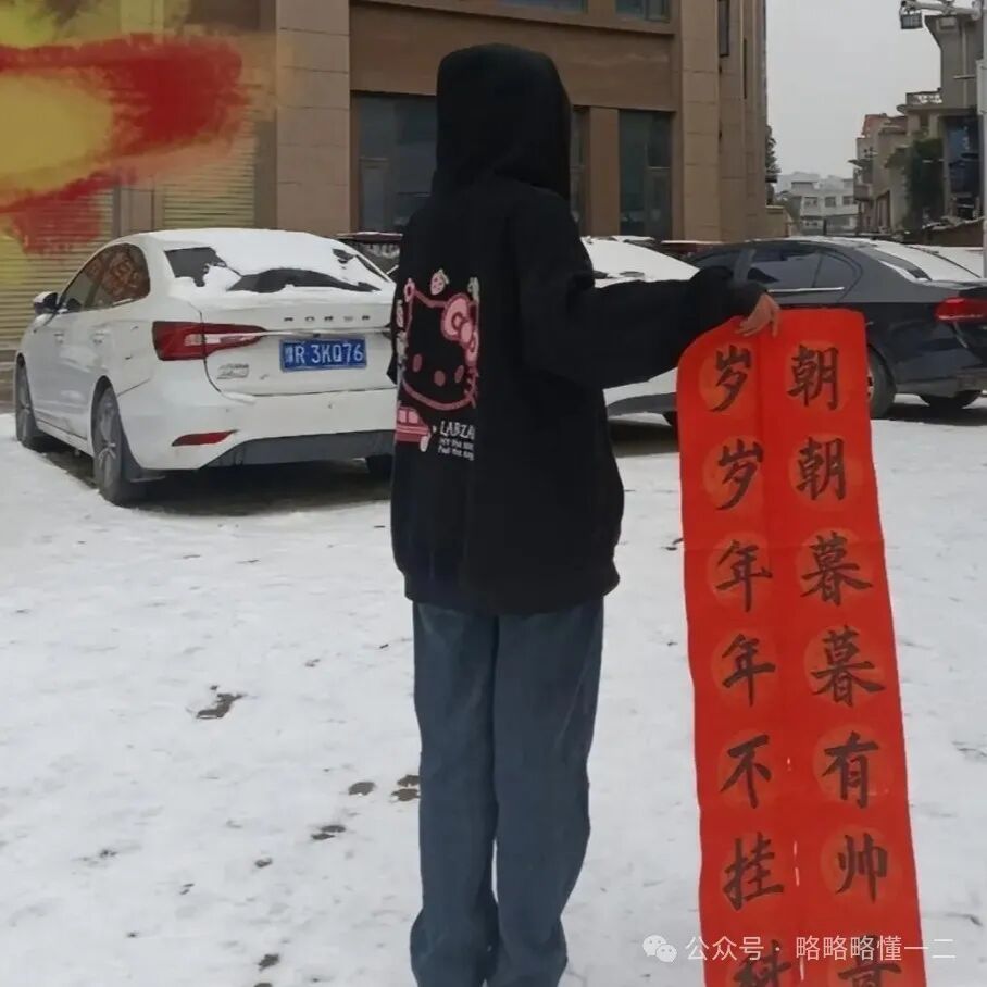 如果说上面这两名大学生贴出来的春联过于重视,那下面这名同学贴出来的春联就很敷衍了,要多敷衍有多敷衍。