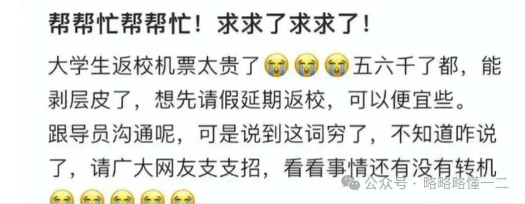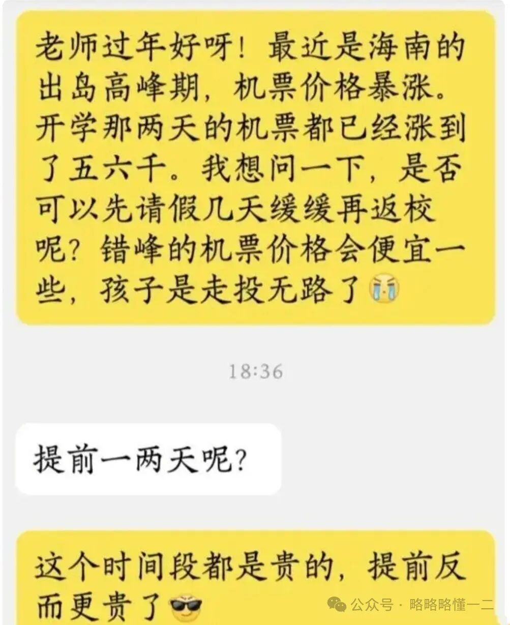 这名大学生和辅导员老师说了面临的情况,希望能够延迟返校,错峰买机票价格会便宜一些。
