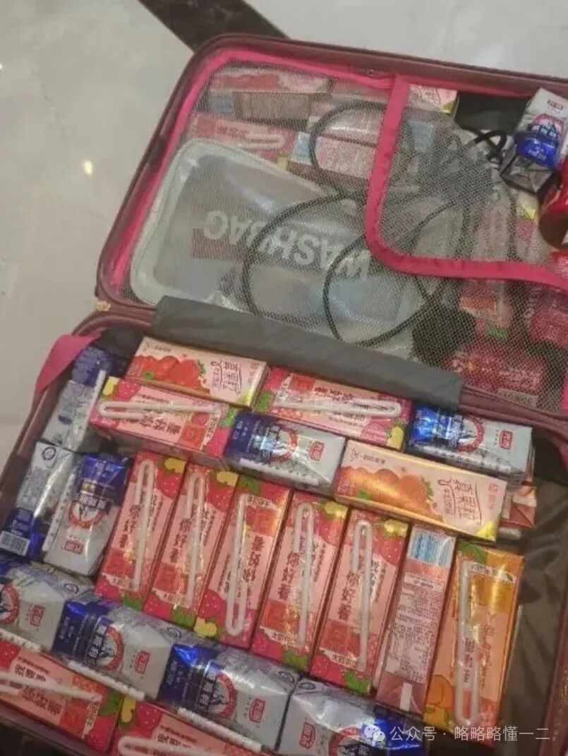 还有同学带的是各式各样的饮品,比如牛奶、饮料等,这些饮品分量更重,真不知道柔柔弱弱的“脆皮大学生”是如何把这些饮品拿回去的。