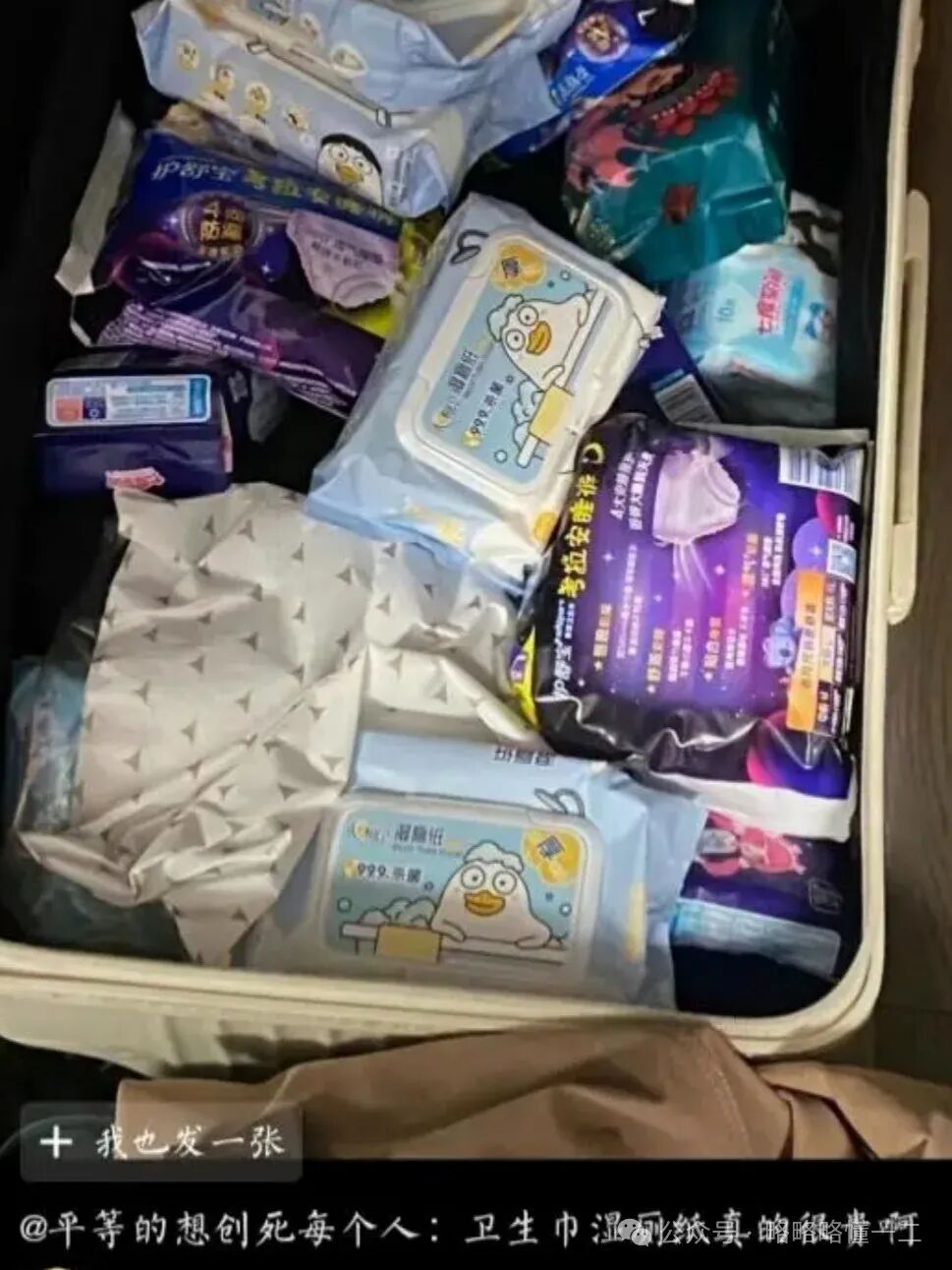 还有的女同学带了湿厕纸放行李箱里回学校,并表示这真的很贵。带卫生纸能理解,毕竟重量还可以,但湿厕纸也太沉了吧!是没考虑到自己上下车和爬宿舍楼怎么拿吗?