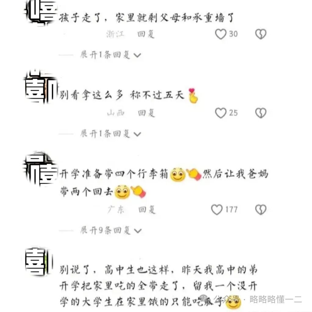 等到大学生开学后,网友表示:“开学后家里就剩下承重墙了”!全被大学生给搬空了。