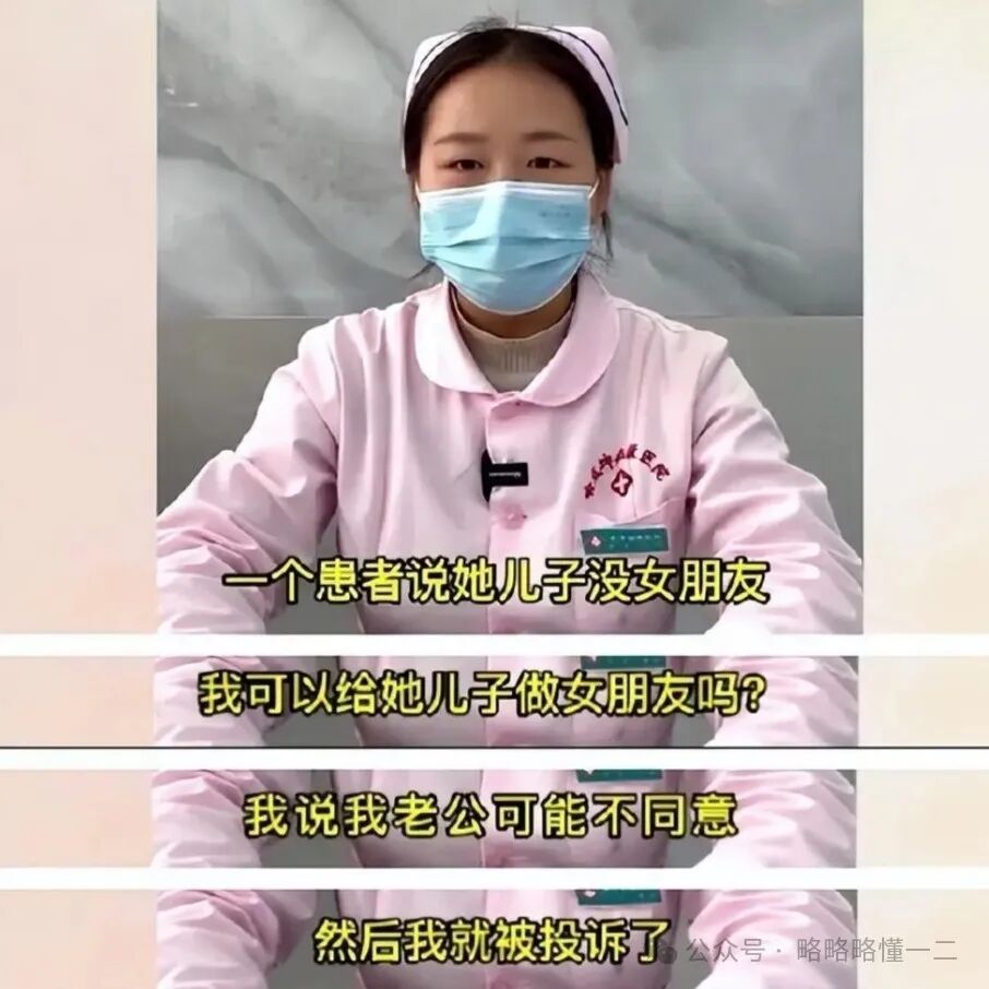 但没想到这名女生被投诉也是因为这个,女生说患者的儿子没有女朋友,问她可不可以成为她儿子的女朋友?
