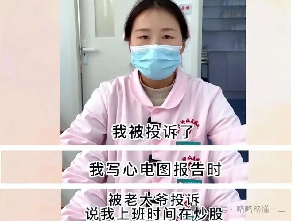 医学生委委屈屈说自己被老大爷投诉了,原因是她在写心电图报告,被投诉说上班期间炒股!老大爷你不投诉,可能我们都不会想到炒股图和心电图还有关系呢!