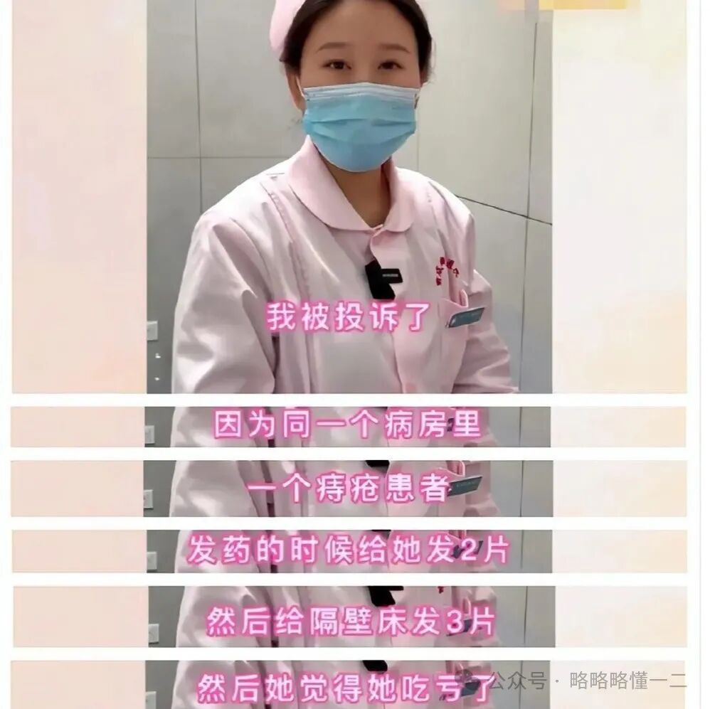 还有痔疮患者好像真的惹不得,护士说自己被投诉的原因是她发药的时候,给这位患者发2片,隔壁床患者发3片,她觉得自己吃亏了,可药是什么好东西吗?