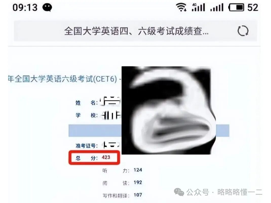 但听说研究生免修英语必须要在两年内过六级,于是这名同学重新考试,两次成绩一个是423分和424分,真是没谁了?