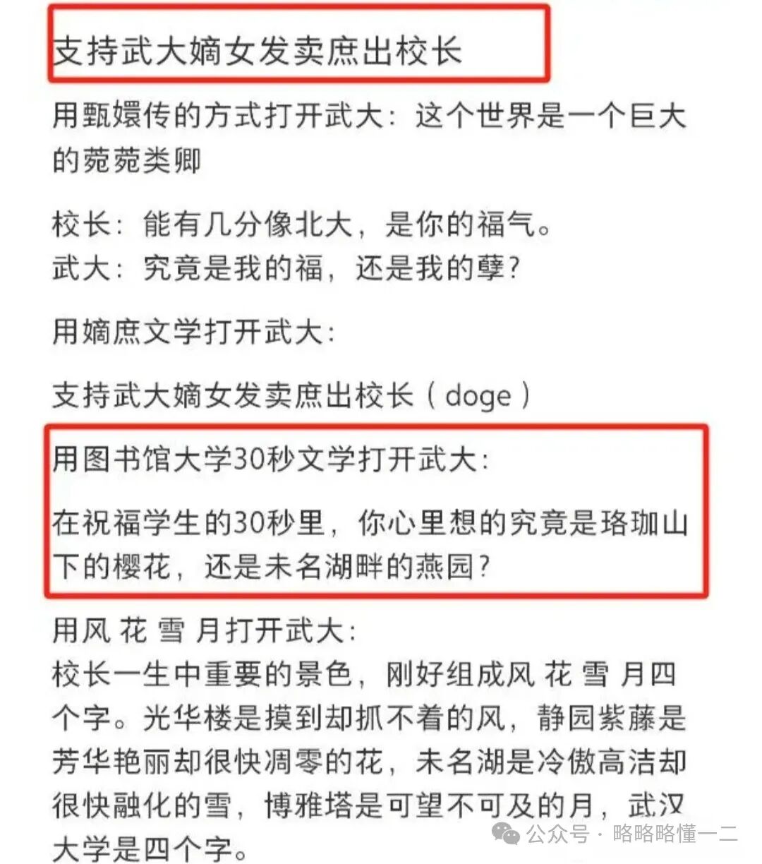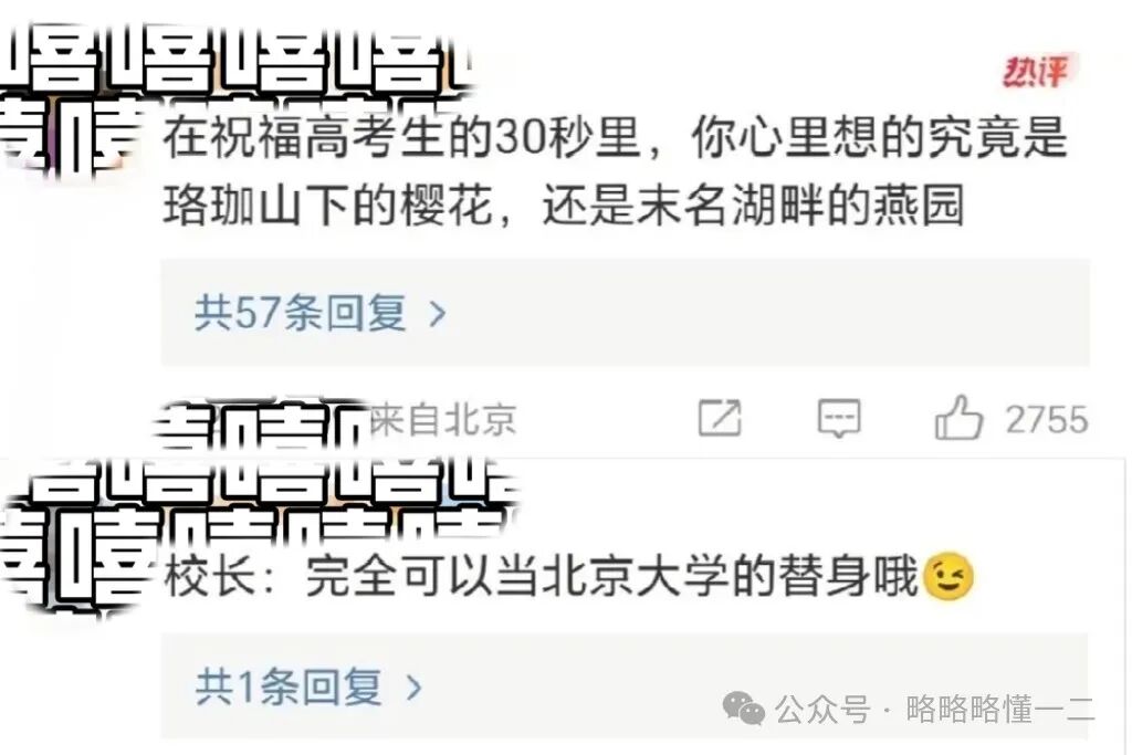 关于宣传学校,最近有一件事情很有意思,那就是武汉大学张校长在宣传学校时,竟然夸上了北大,瞬间火上热搜,好一个“宛宛类卿”文学。