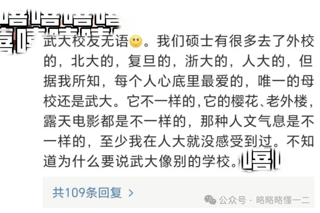有武汉大学校友说他们读硕士去了不同的学校,但每个人都是从心底最爱母校武大的,有不一样的感觉,为什么要说武汉大学像别的学校呢?