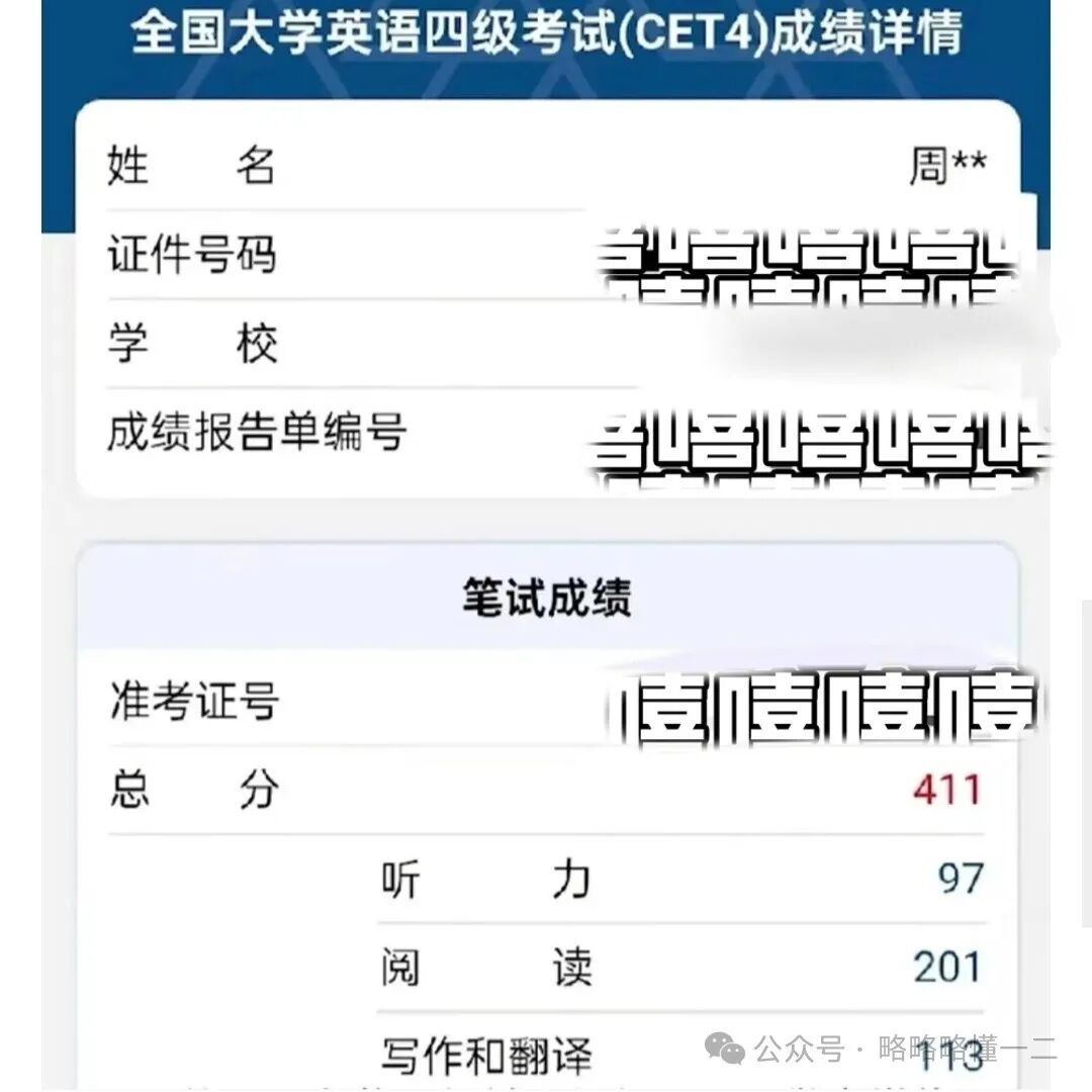 最近一位9万粉丝的英语学习博主在网上分享自己英语四级成绩,英语四级考了411分。