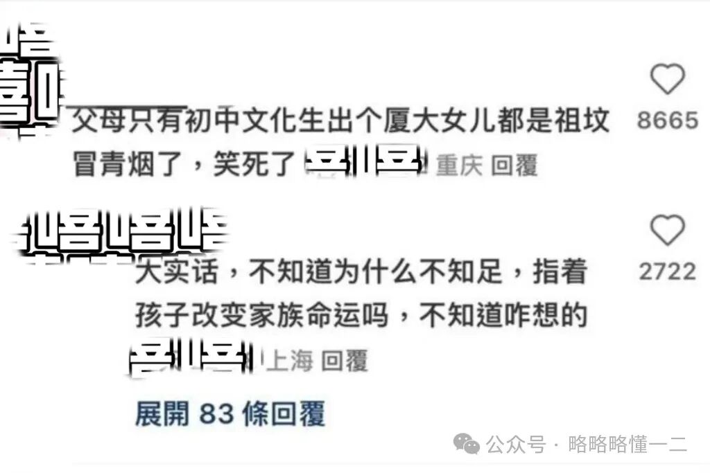 网友看后非常不理解,这名女生都已经考上厦门大学了,还有什么不满意的呢?指着孩子改变家族命运吗?