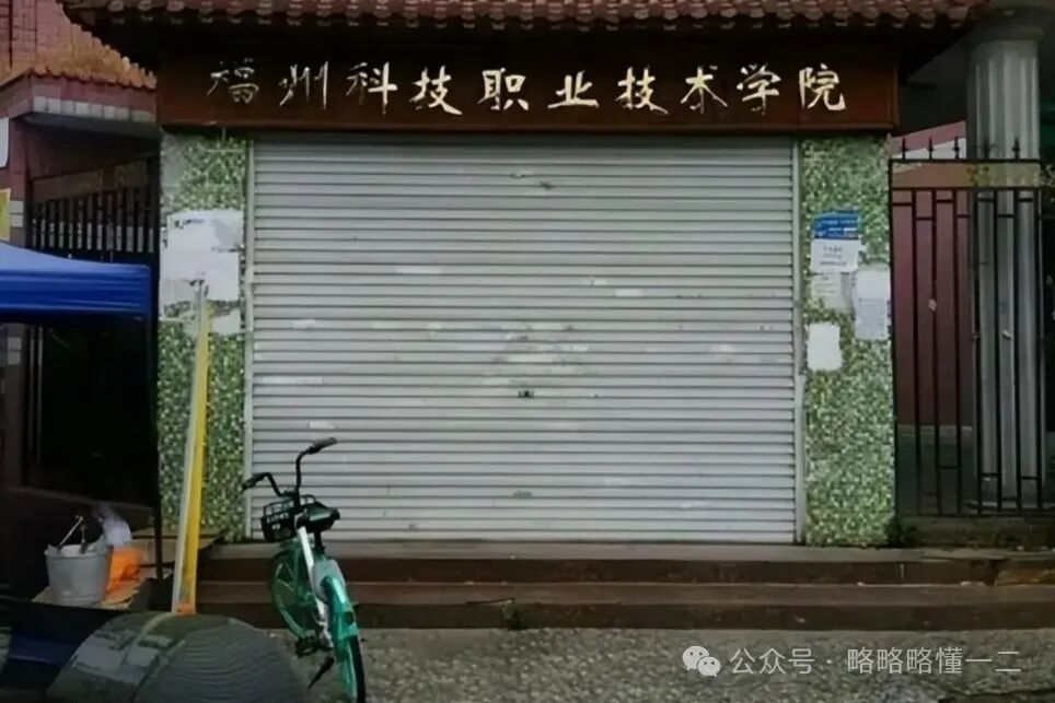 “福州科技职业技术学院”的环境也很“窘迫”,校门怎么还没有了呢?直接用车库门充当学校门了,在我们印象中学校的门面是很重要的。