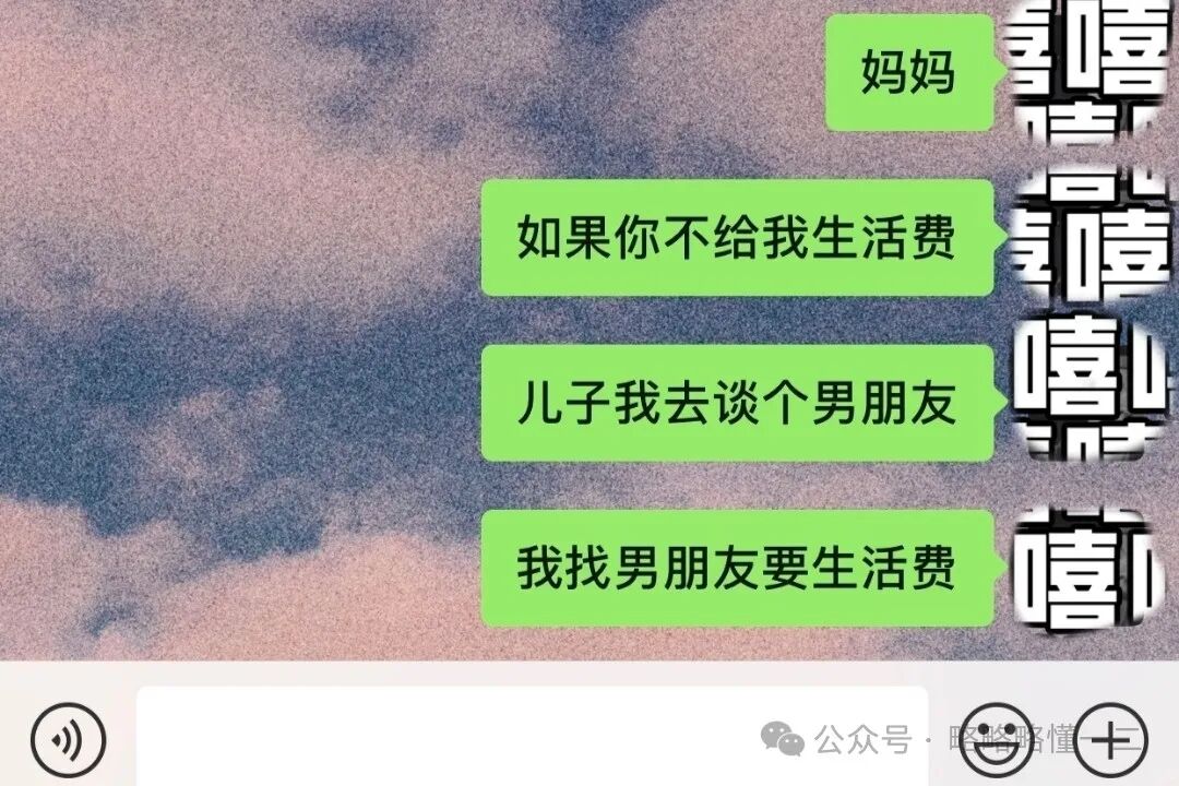 大学生和妈妈说如果妈妈再不给他生活费的话,她儿子就要去谈个男朋友。