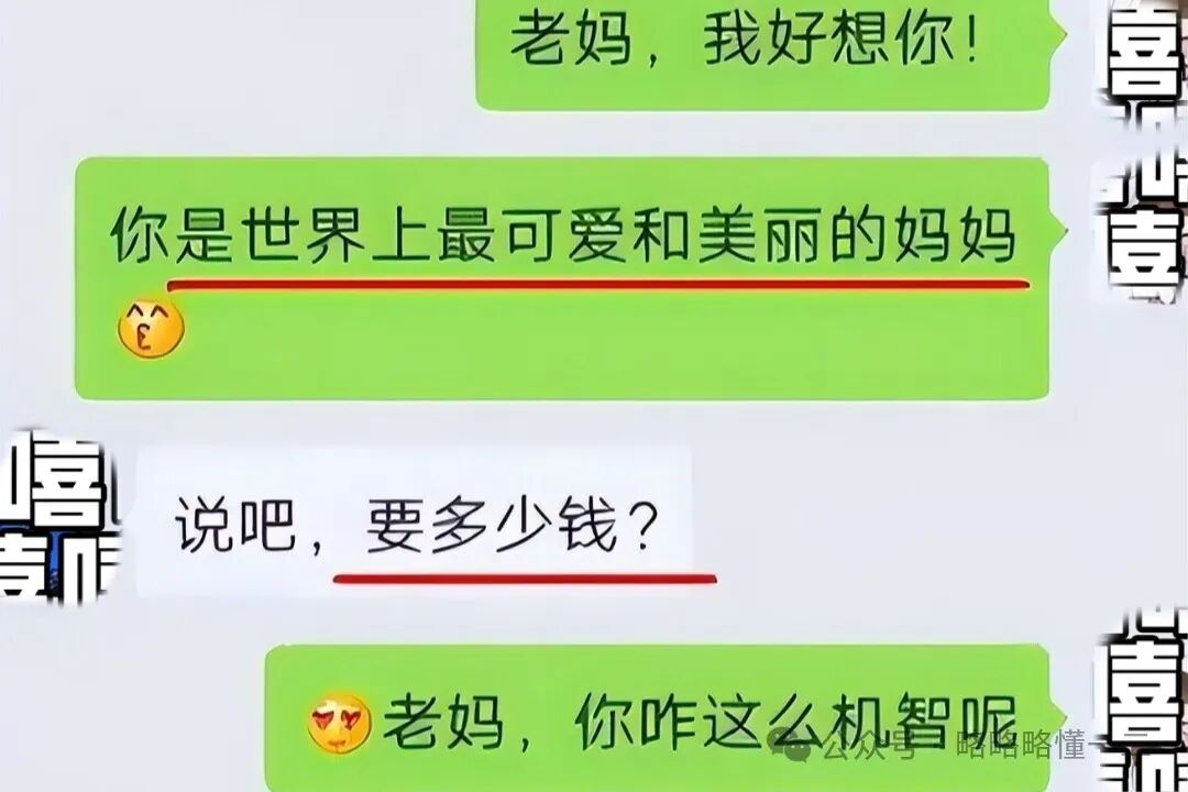 还有“嘴上抹蜜”会说话型的大学生,为了生活费套路都用尽了,大学生对妈妈撒娇,表达对妈妈的想念之情,又夸妈妈是世界上最美最可爱的妈妈。