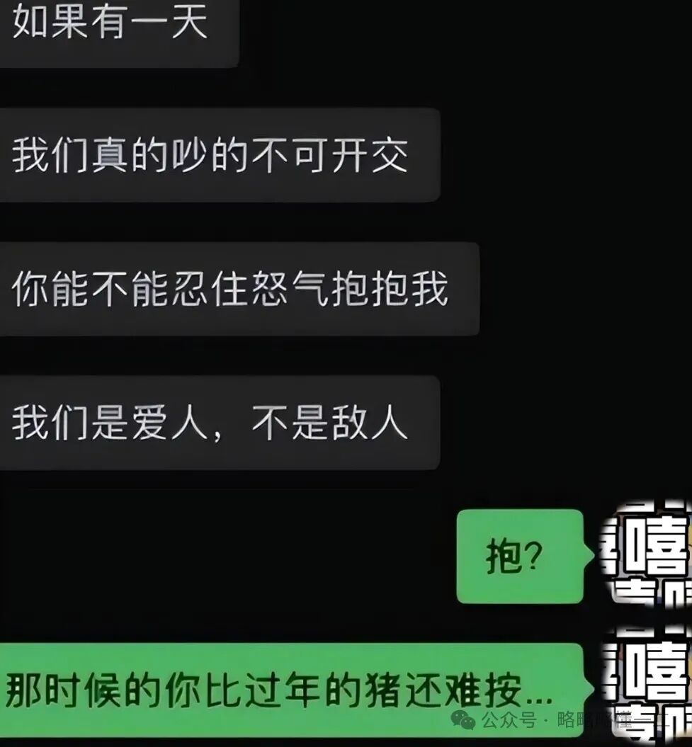 果然下一秒破功了,男生瞬间揭开老底,说生气时候的女朋友比过年的猪都难按,这是什么会形容的天才,看后笑得忍不了一点啊,主要是画面感太强了。