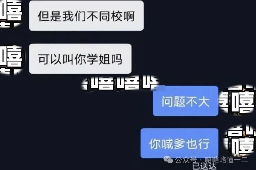一位不同校的学弟问女生可以叫她学姐吗?霸气学姐回复:“问题不大,你喊爹也行”。