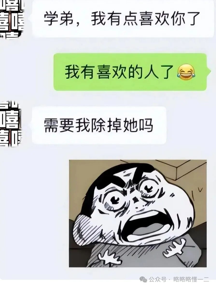 学姐明确表示自己有点喜欢学弟了,学弟感觉也不是“渣男”,坦诚回复学姐,自己有喜欢的人了,接下来事情发展就离谱了,学姐表示:“需要我除掉她吗?”