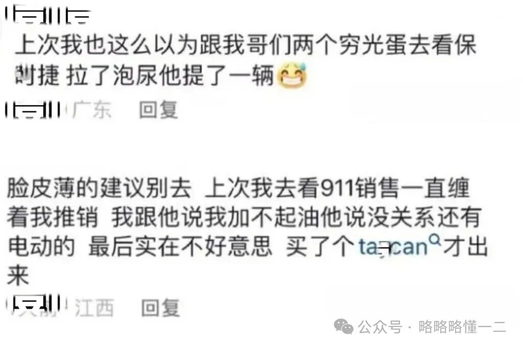保时捷的销售曾经说:“保时捷不会放弃任何一个未来保时捷的潜在客户”,就是说销售人员未必就不欢迎大学生去参观,哪怕他们销售知道他们是来蹭吃蹭喝,也会好好接待。