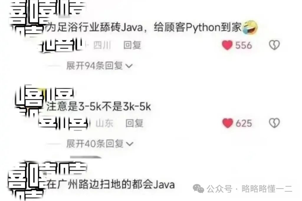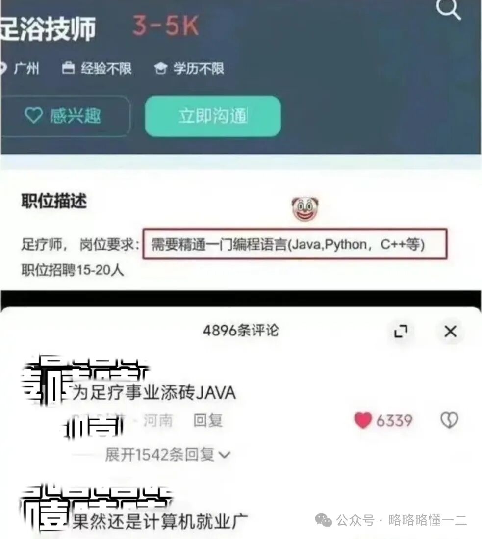 于是网上走红了很多新梗,比如“为足疗事业添砖Java”,还有网友说在广州路边扫地的都会Java,这么一看计算机专业的就业还真广。