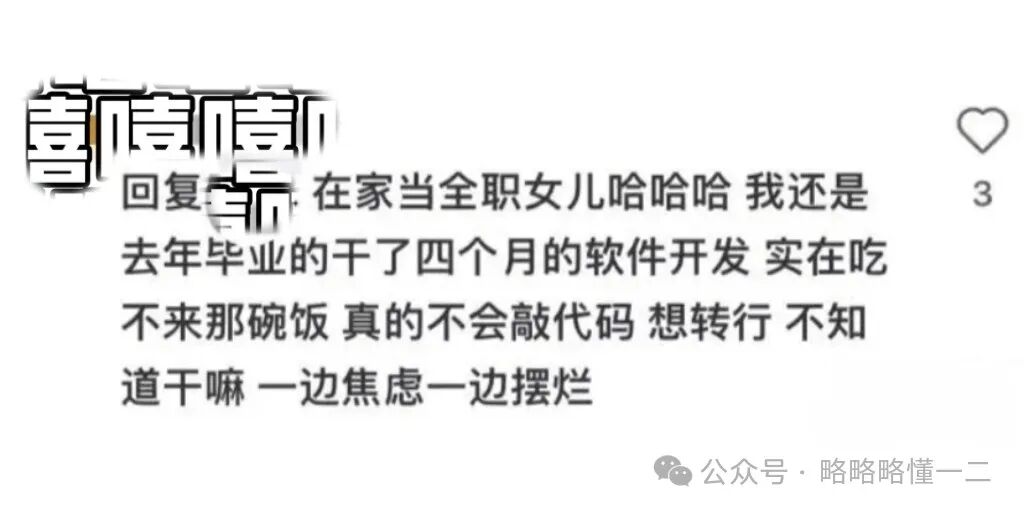 这名同学说自己去年毕业做了四个月的软件开发,然后表达真情实感,真的不会敲代码,想转行不知道做什么?一边焦虑一边摆烂,而像这名同学这样的人,应该还不止她一个。