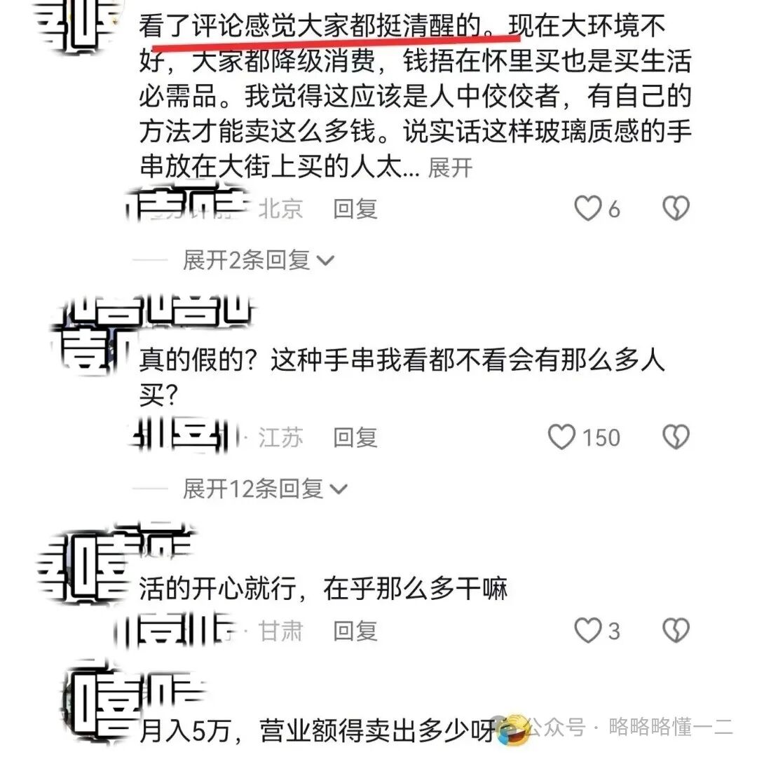 有网友质疑说根据平时自己的了解和观察,在街道上摆摊卖手串好像没有几个人会去购买,购买人数不多,怎么能每天收益那么多的?大概也就是能解决温饱问题。